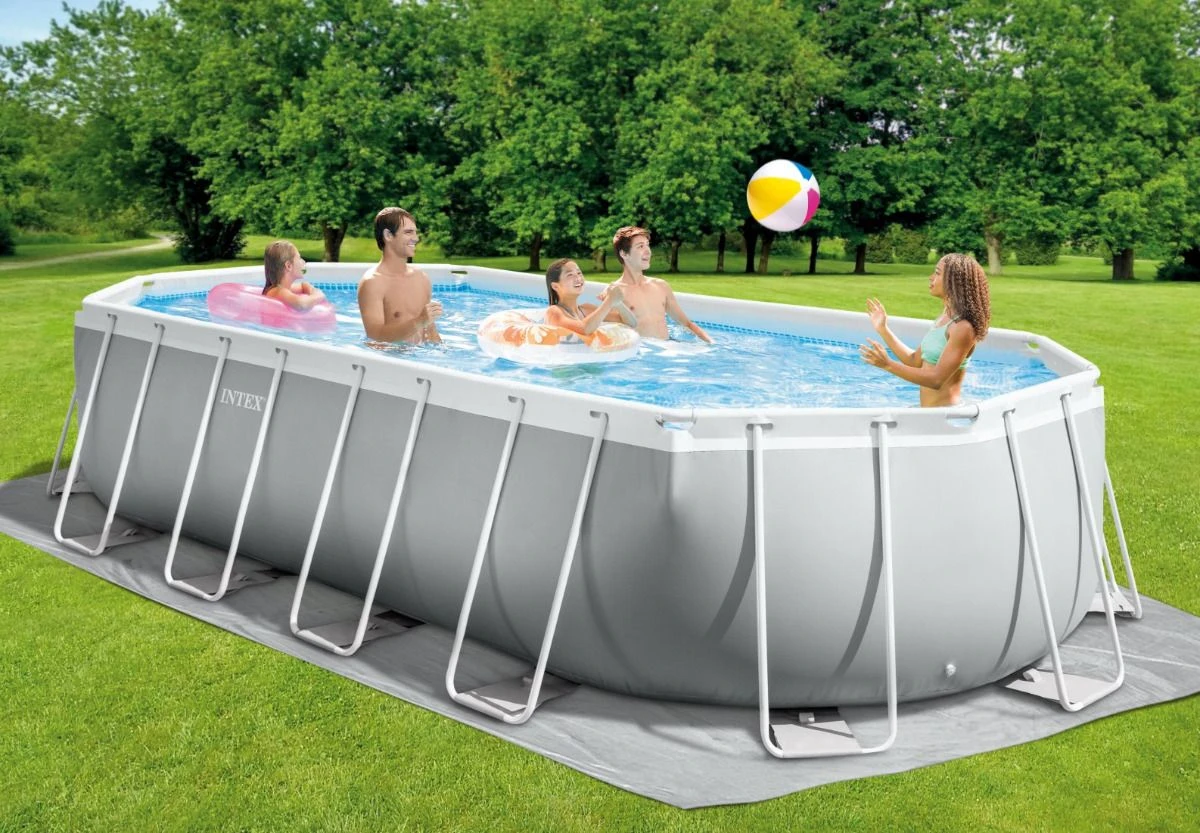 PRE-SEASON SALE – LIMITED STOCK Intex model 26798, Prism Steel Frame Oval Premium Swimming Pool Set 20ft L x 10ft W x 48″ H (610cm x 305cm x 122cm), water capacity 4,003 gallons (18,202 litres). Includes cartridge filter pump model C1500, ladder, ground cloth and debris cover. A great garden pool. Ready for water in 60 minutes. Built to provide more swimming space, enhanced with strong powder-coated steel tubing. Please note: COLLECTION FROM STORE ONLY, please contact us for estimated pallet kerbside delivery quote.